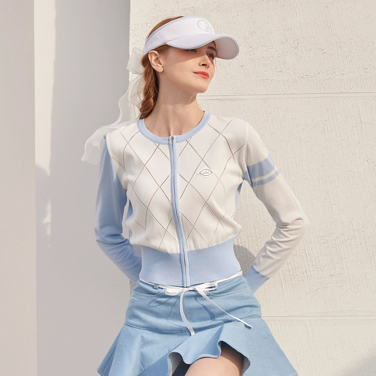 다이아 펀칭 썸머 니트 집업 Diamond punching Summer Knit Zip-up (Blue)