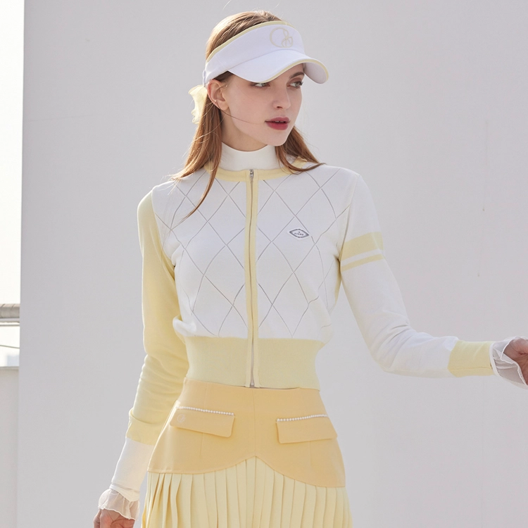 다이아 펀칭 썸머 니트 집업 Diamond punching Summer Knit Zip-up (Yellow)