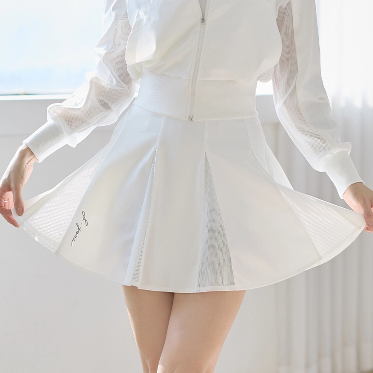 V-밴드 메쉬 플레어 스커트 V-band Mesh Flare Skirt (White)