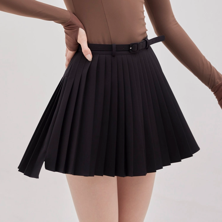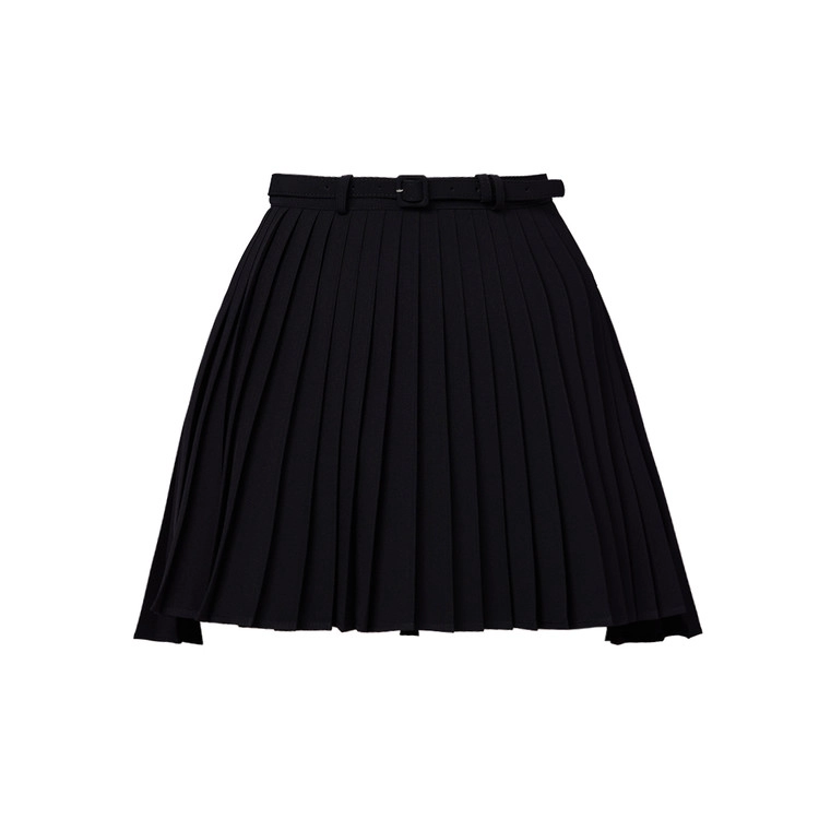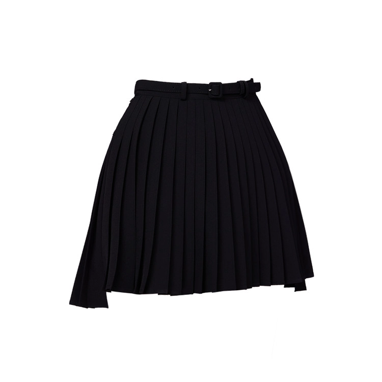 언발 벨트 플리츠 스커트 Unbalanced Belt Pleats Skirt (Black)