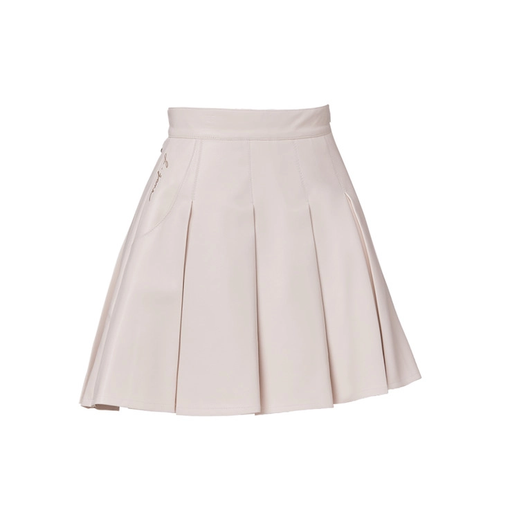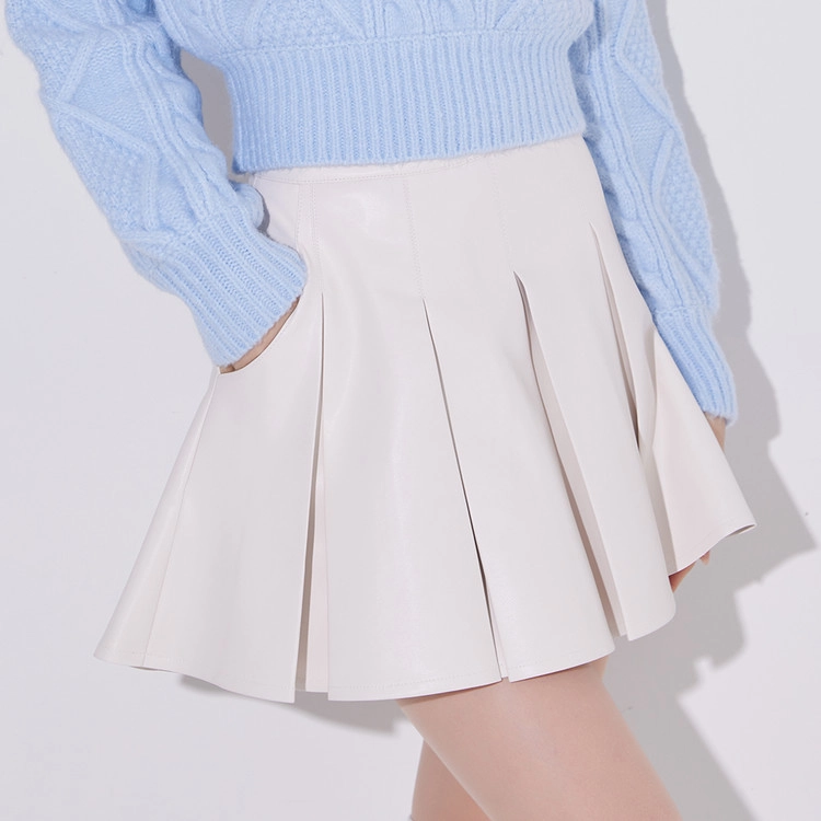 와이드 플리츠 레더 스커트 Wide Pleats Leather Skirt (Ivory)