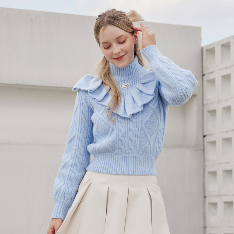 파스텔 프릴 니트 스웨터 Pastel Frill Knit Sweater (SkyBlue)