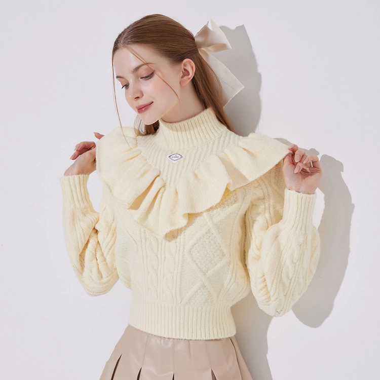 파스텔 프릴 니트 스웨터 Pastel Frill Knit Sweater (Bright yellow)