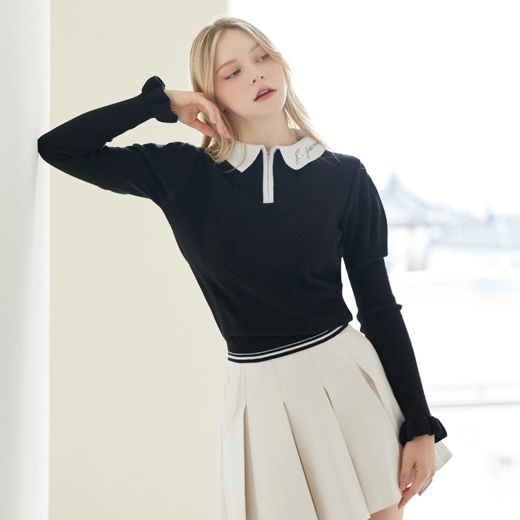 퍼프 슬리브 카라 니트 Puff Sleeve Collar Knit (Black)