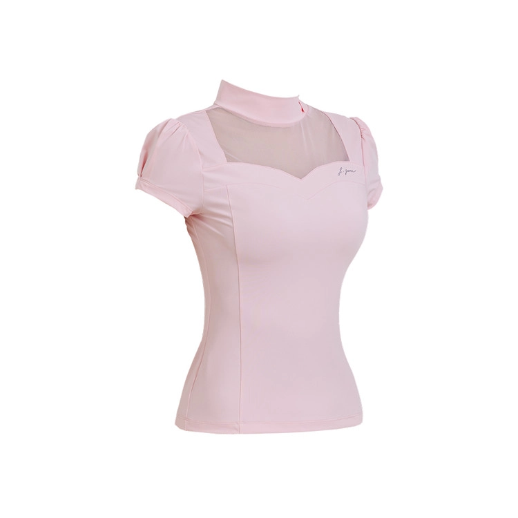 하트넥 시스루 반팔 티셔츠 Heart Neck See-through Half Sleeve T-shirts (Pink)
