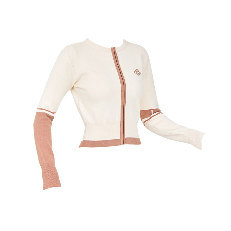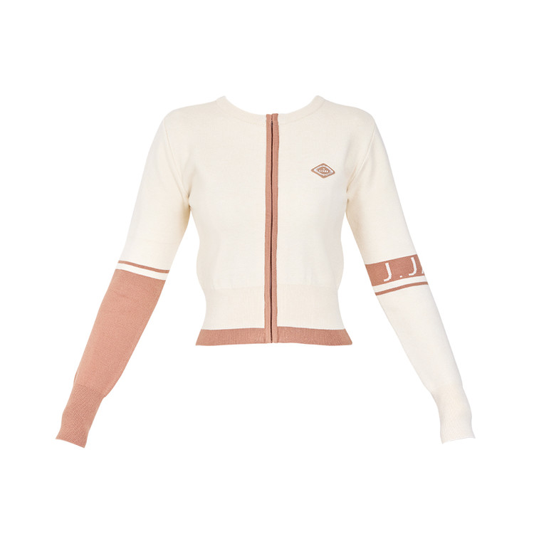 컬러 라인 니트 집업 가디건 Color Line Knit Zip-up Cardigan (Beige) 복제