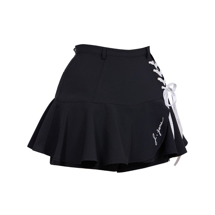 레이스업 플라워 큐롯 팬츠 Lace-up Flower Culotte Pants (Black) 복제